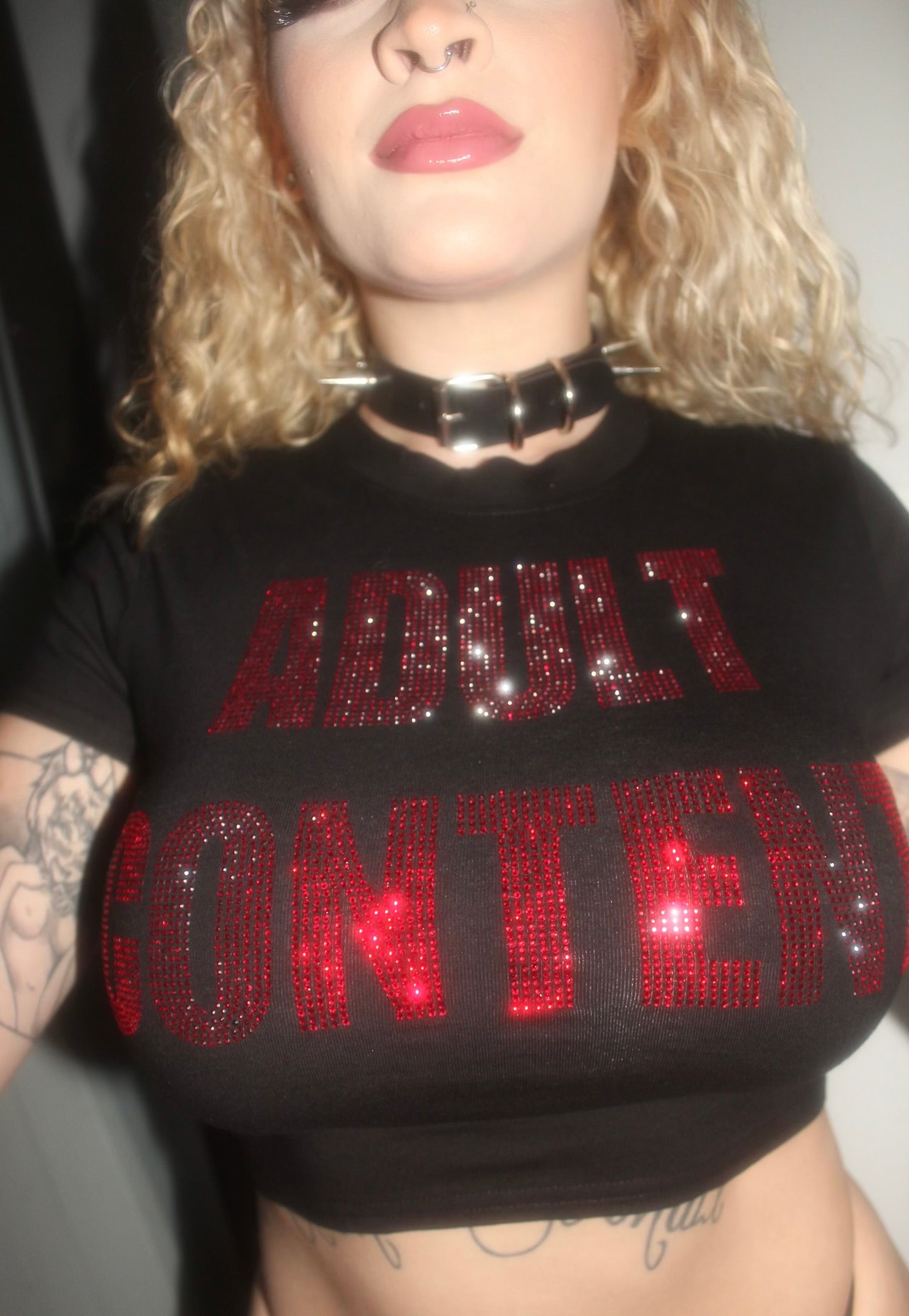 Adult content rhinestone crop top