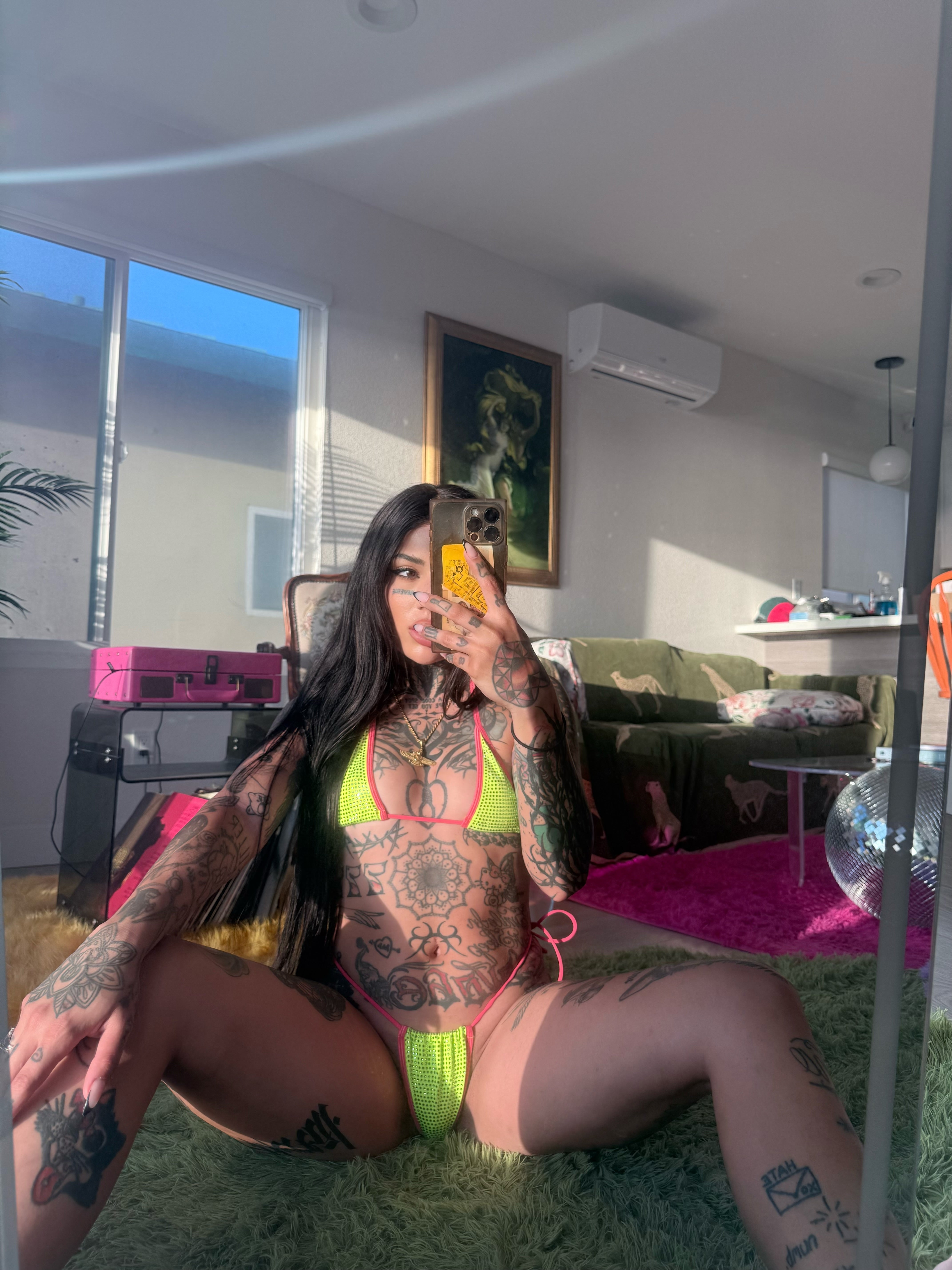 Pink chromehearted latex look bikini