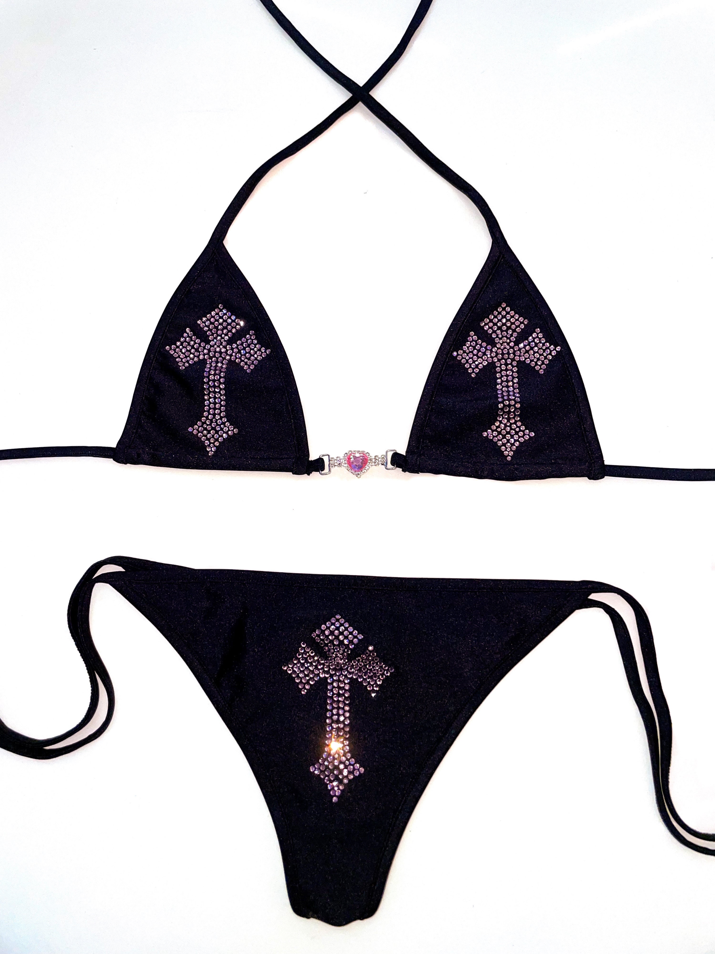 Forgive me father pink rhinestone bikini